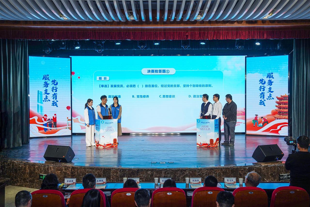 “巅峰大对决”环节的抢答赛更是紧张激烈,围绕政策理论、党务工作、民生服务等内容的10道题目,考验着选手的“最强大脑”和“闪电手速”,两队在抢答中你来我往、分秒必争,现场气氛燃至沸点。