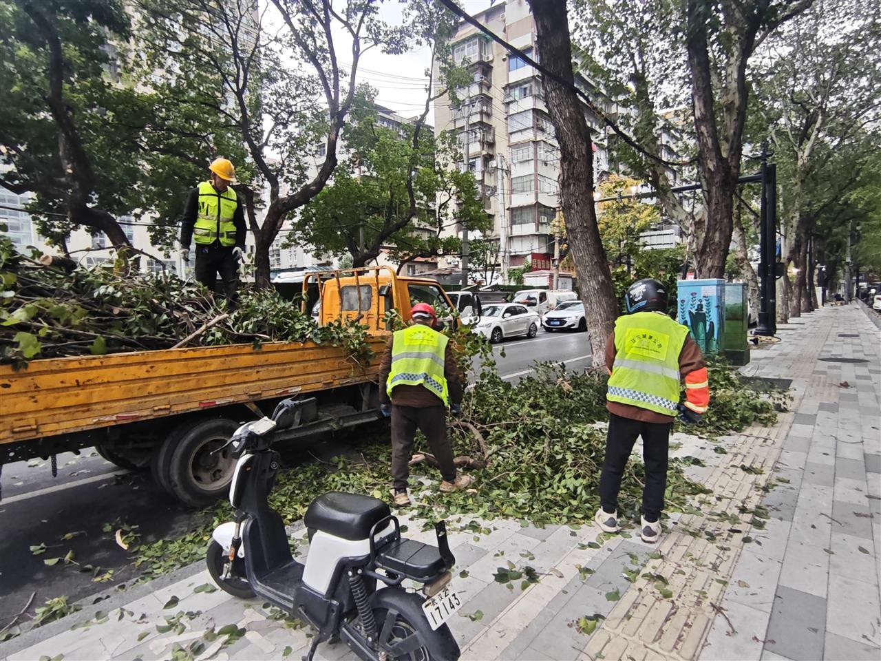 据统计,江汉区城管执法局绿化队17日当天共累计处置常青路、中山大道、青年路等路段断枝约50处,并清理黄孝北路、民权路等路段倒树4处,及时消除了道路安全隐患。