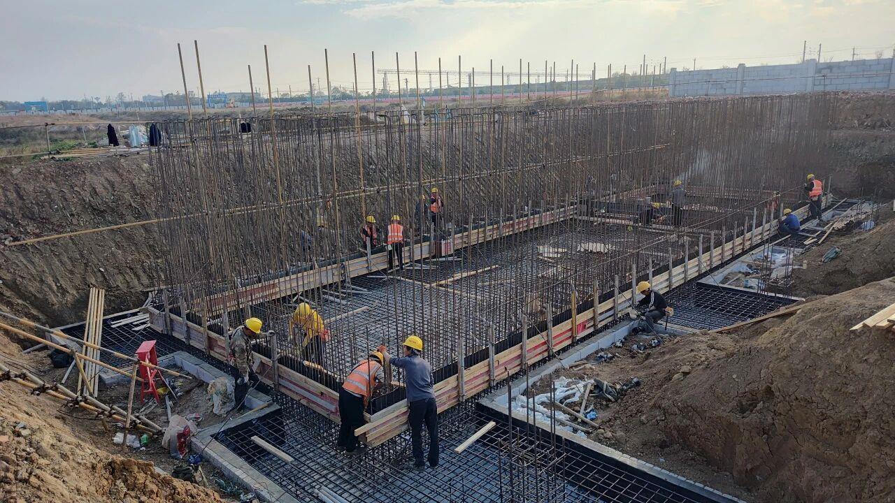 施工现场,机器轰鸣与工人作业的声响交织,运输车辆往来穿梭,钢筋骨架在阳光下排列整齐,一派繁忙有序的建设景象。“我们9月正式进场施工,目前正集中力量推进厂房基础施工,预计12月可完成正负零建设,为后续主体结构施工打下坚实基础。”项目施工负责人戴红良介绍,施工团队严格按照工期节点倒排计划,在保障工程质量和施工安全的前提下,全力加快建设进度。