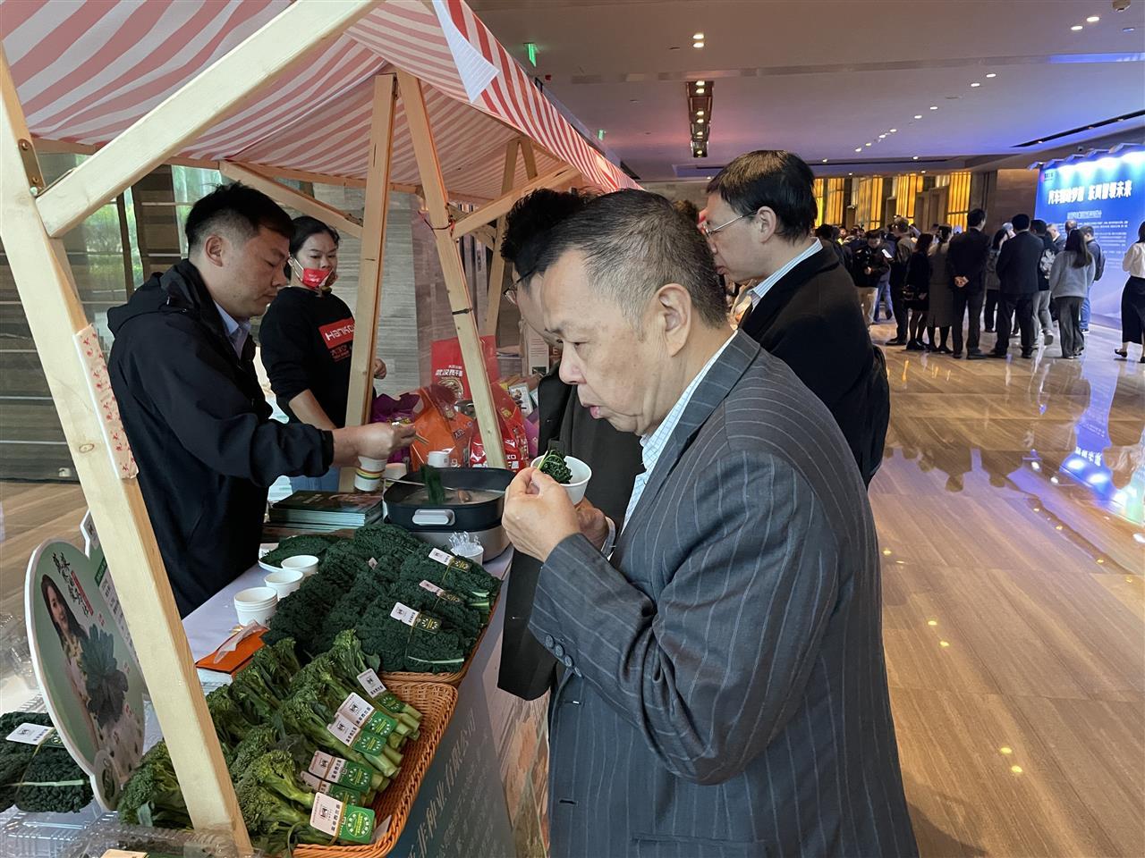 新闻记者看到,亚非种业展位前排起长队。亚非种业工作人员李先生一边介绍皱叶菜的维生素C含量高,一边将煮好的皱叶菜给排队的市民进行品尝。深圳市民朱先生品尝后不时点头,频频称赞“好吃”。一旁的农贸经销商添加亚非种业工作人员的微信,表达与亚非种业后续合作意向。