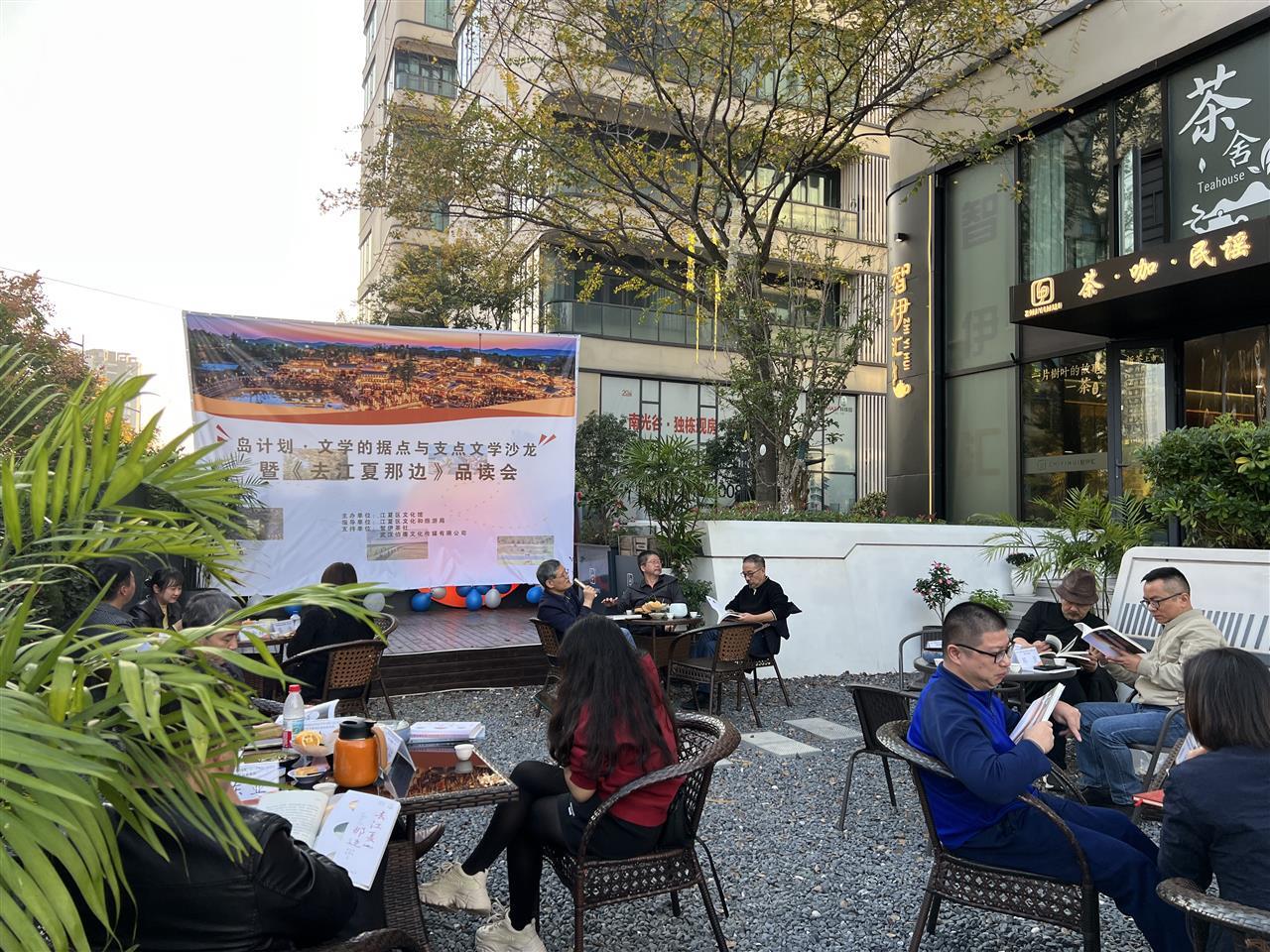 文学艺术家在智伊茶社,就江夏文旅推介专著《去江夏那边》开展文学沙龙活动,并对江夏的文学与旅游融合发展献计献策。据了解,《去江夏那边》是由多位全国知名作家创作的散文合集,以江夏区境内的自然资源与人文风貌等为内容,全景式呈现江夏在乡村振兴、建设社会主义新农村方面的成就。本次系列文学活动作家们将围绕武汉的民宿、湖泊和岛屿进行文学创作,创作的文学作品将被制作成文旅宣传画面集中展示。