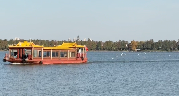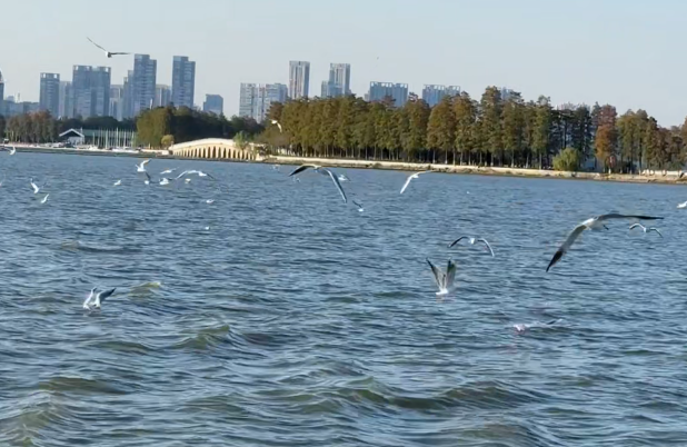 尽管尚未到最佳时期,但这份“冬季限定伙伴”的邂逅带给不少游客一份意外惊喜。游客王女士拿出手机拍摄“人鸥同游”的奇妙一幕,她赞叹道:“以前听说云南大理有白鸥追着游船的奇景,没想到武汉东湖也有,它们跟随游船一起起舞,太震撼了!”