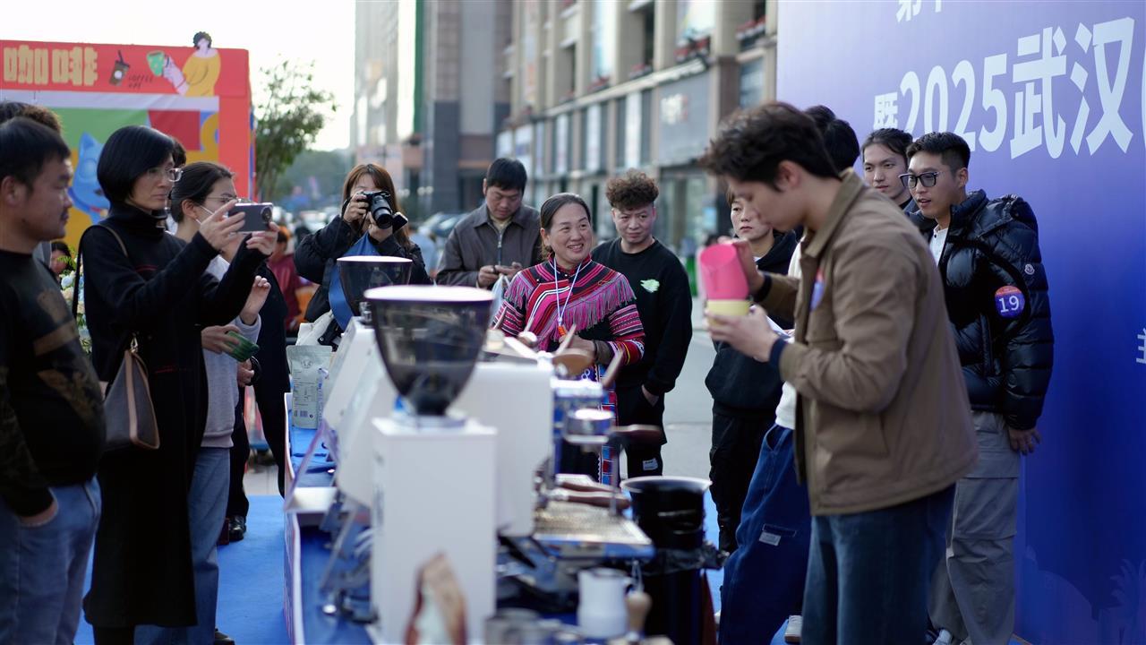 当天,这里同步举办2025武汉(汉口北)咖啡文化节。40余家全球咖啡展商带来地道咖啡,“灵犀”机器人现磨咖啡与机器人拉花比赛,成为全场最吸睛的互动环节。