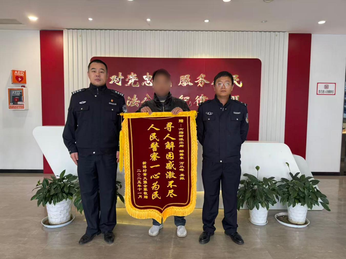 黄爹爹早上7点多就出门了,下午3时30分仍未回家,手机一直无法接通。11月21日,武汉市长江新区公安分局六指街派出所民警介绍,接到报警求助后,辅警吴振灵机一动,给老人的手机充了话费,果然拨通了电话,当晚8时许终于找到了一身疲惫的黄爹爹。事后,黄爹爹托人来到派出所,赠送了一面印着“寻人解困感激不尽,人民警察一心为民”的锦旗。