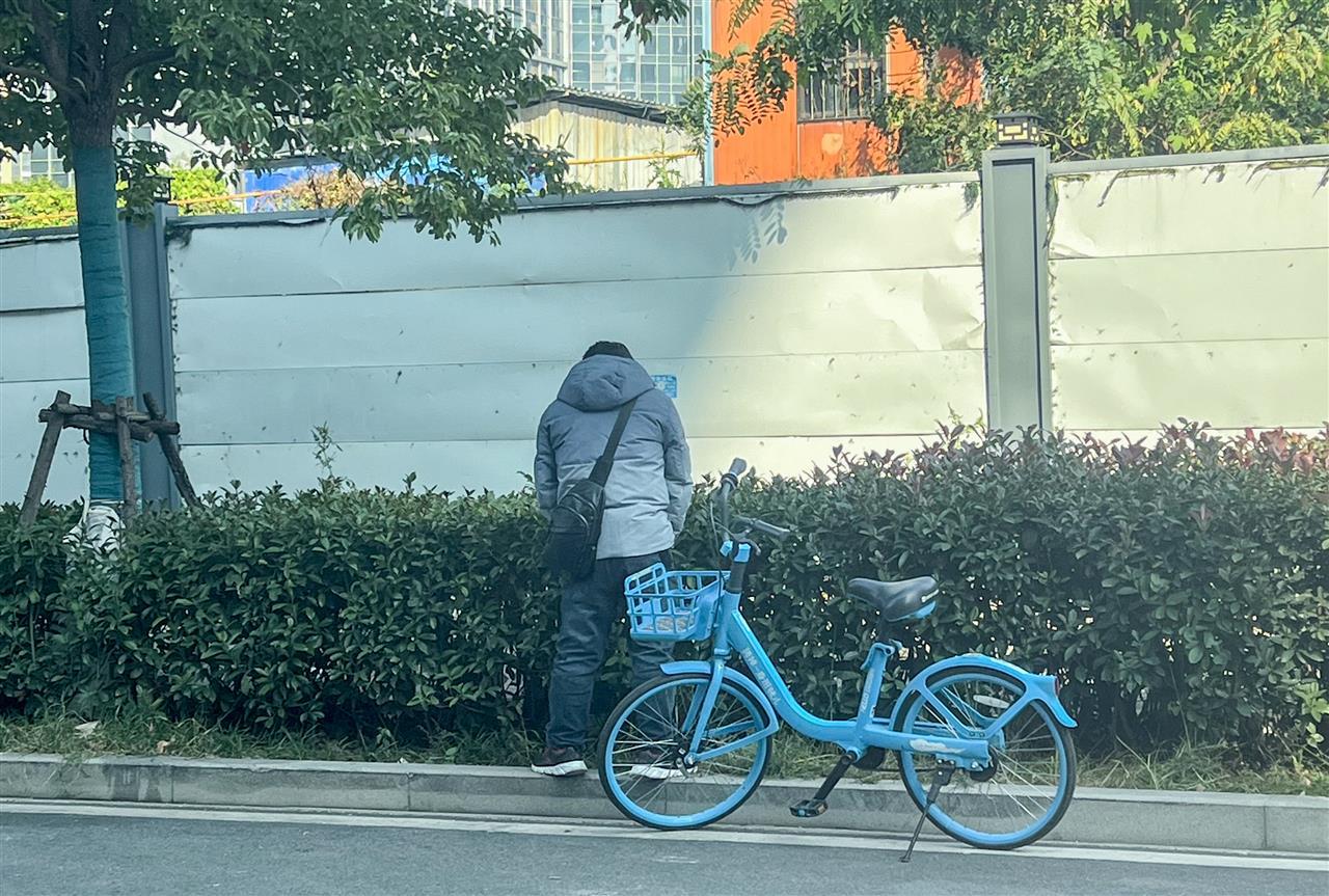 在随后10分钟的蹲守观察中,一名的士司机与一名骑共享单车的男子先后将车辆停靠路边,无视过往行人和车辆,公然在路边小便,行为十分随意。