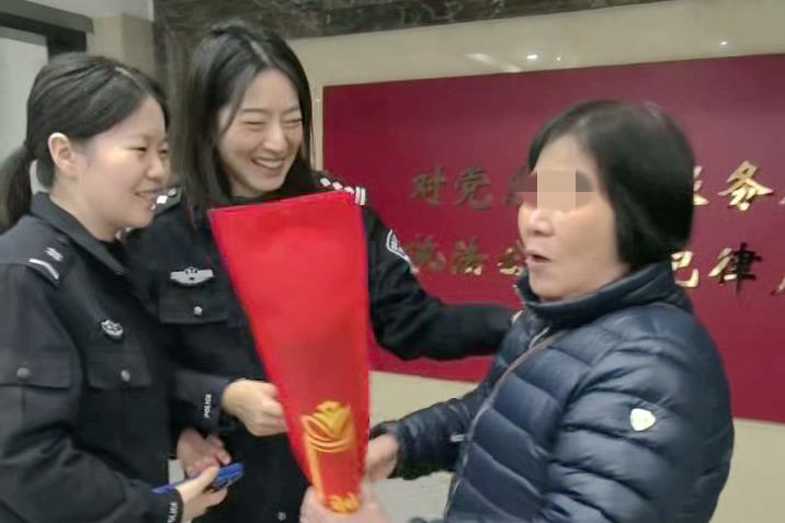 “你们想方设法帮助我,我非常感动!”11月18日,蔡婆婆送锦旗到派出所表达感谢。