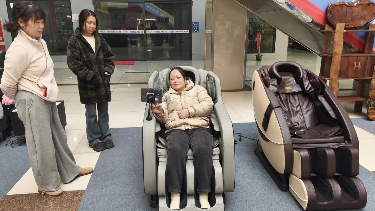 不远处,聚优港展区的智能按摩椅区域,体验者只需语音选择模式,按摩椅便能自动运行,同时记录身体压力数据并生成健康报告。“操作简单,父母一学就会,还能随时了解身体状态。”一位正为父母咨询的年轻消费者表示。