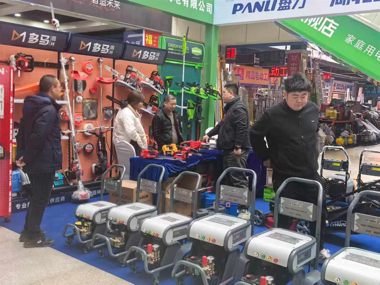 同一展区内,百汇农机带来的清洗机、切割机等园林机械也吸引了不少专业买家驻足询价。展区负责人谭汉波一边演示设备操作,一边介绍产品适用场景。他透露,首日已成交设备超50套,明年计划设置互动体验区,让客户亲手试用产品。此外,飞雕开关也携全系产品亮相,从插座面板到照明卫浴,丰富产品线满足家装市场多元需求。