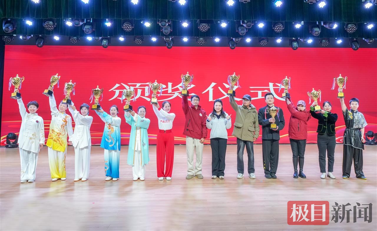 33个精心编排的节目轮番登场,演绎中华武术的博大精深。太极八法五步刚柔并济,陈式太极拳沉稳厚重,武当太乙游龙拳飘逸灵动;集体剑寒光闪烁,七星剑势如流星,太极拂尘开合有度;更有健身气功气舞、木兰拳操等尽显养生智慧,舞龙、中华武龙展现民族气魄,少儿集体拳萌态与英气并存。从传统拳械到创新组合,从双人技艺到集体展演,多样的项目设置既彰显了武术文化的传承活力,也满足了不同年龄段爱好者的展示需求,精彩的展示不时赢得在场观众的热烈喝彩和掌声。