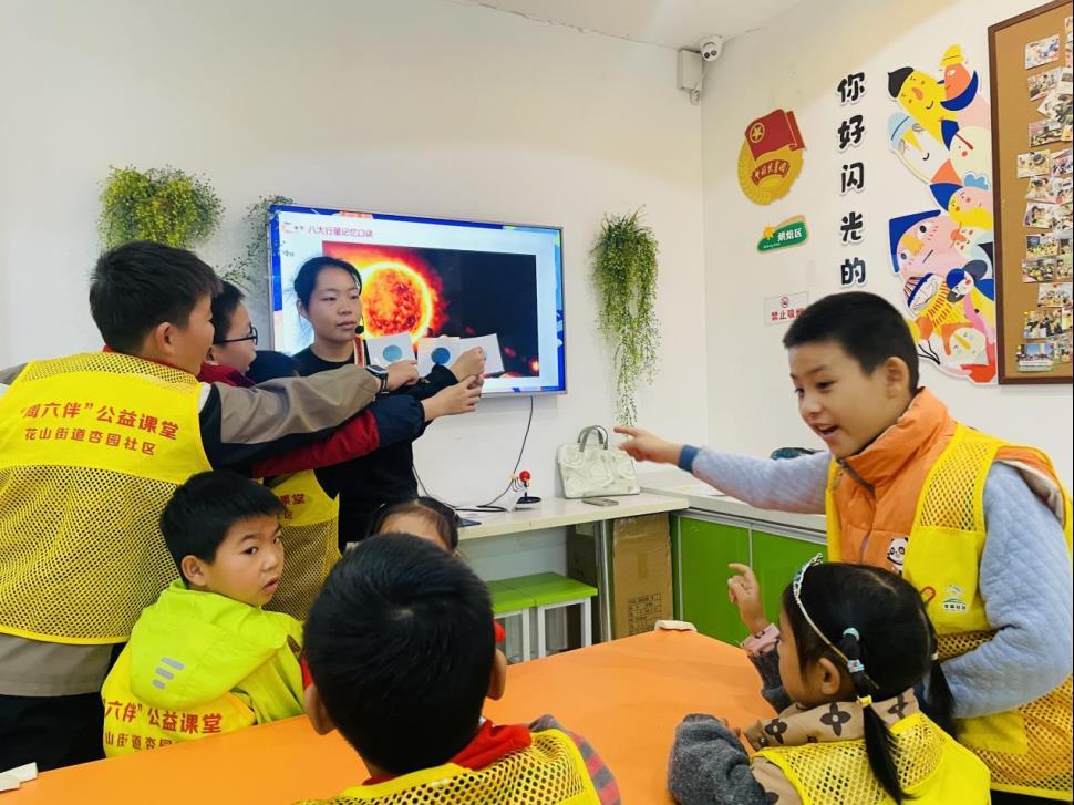 为激发青少年科学探索热情,厚植航天强国梦想根基,近日,光谷花山街杏园社区“周六伴”课堂开展了三期“探索太空”主题科普活动,通过沉浸式体验与互动式教学,带领社区青少年穿越星际,在宇宙的壮阔图景中播撒科学种子。