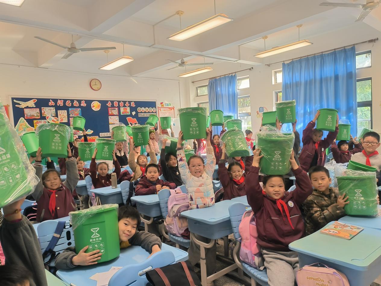 “我不仅学会了怎么分垃圾,还要回家教爸爸妈妈。”11月21日,洪山区武珞路小学金地分校三年级陈同学举着刚领到的厨余垃圾桶开心地说。