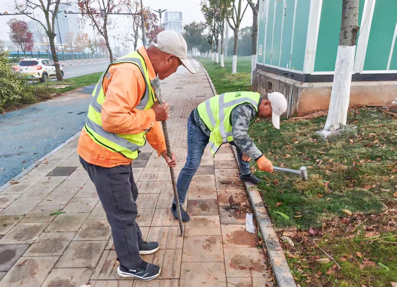 11月24日,细心的市民发现,东湖高新区街头巷尾,多了一些工人师傅忙碌的身影。他们手持专业工具,俯身于路面,拔出路面上的“绊脚钉”,守护着市民的出行安全。