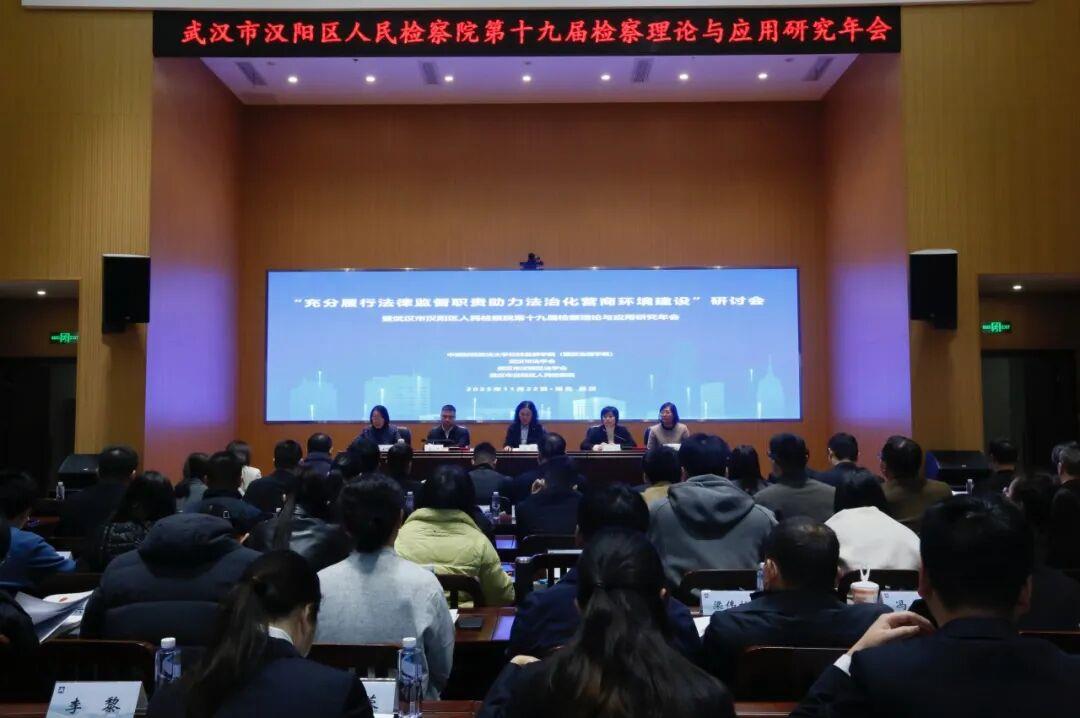 11月22日,由中南财经政法大学纪检监察学院(国家治理学院)、武汉市法学会主办,由武汉市汉阳区法学会、武汉市汉阳区人民检察院承办的“充分履行法律监督职责助力法治化营商环境建设”研讨会暨武汉市汉阳区人民检察院第十九届检察理论与应用研究年会在汉阳区检察院举办。