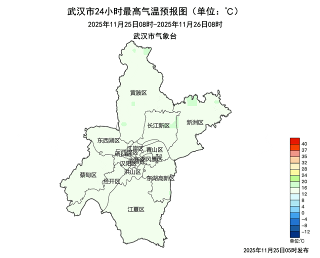 昨天我市晴天到多云,早晨至上午东西湖、蔡甸局地出现大雾,午后至前半夜大部出现6~7级的偏北阵风,最大阵风为黄陂矿山站21m/s(9级,24日19:44)。昨天最低气温中心城区8~11℃,其他大部5~8℃,大部最高气温19~21℃。今天早晨我市晴天,最低气温黄陂北部-1~2℃,中心城区5~10℃,其它大部2~5℃。