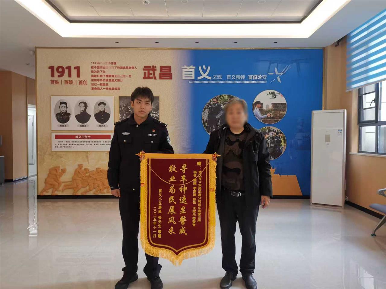 11月19日凌晨,武汉市武昌区居民张先生停放在小区的电动自行车被盗。武汉市公安局武昌区分局首义路街派出所民警迅速展开侦查,8小时后成功抓获嫌疑人并追回被盗电动车。11月20日,张先生委托家属将一面锦旗送到首义路派出所,向办案民警致谢。