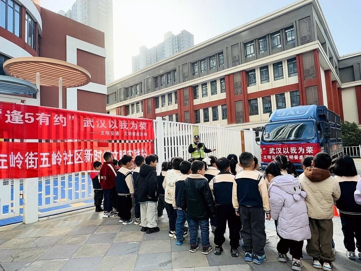 11月25日,武汉东湖高新区左岭街新时代文明实践所联合五岭社区新时代文明实践站、左岭交管中队、五岭贝乐健幼儿园以及嘉仁社工开展“武汉以我为荣——文明交通、文明餐桌”主题活动。30余名辖区青少年儿童通过大货车盲区体验、农场主课堂等沉浸式环节,学习交通安全、节约粮食知识,争当社区文明新风传播者。