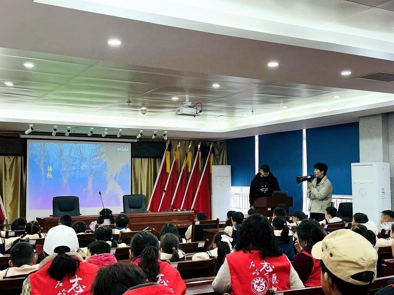 接下来,孩子们在工作人员的有序带领下转移至社区新时代文明实践站教室,开启文明餐桌主题环节。本地农场主结合视频,生动讲述一粒大米从播种到餐桌的完整过程,分享农民劳作的艰辛经历。孩子们近距离观察农作物样本,认真倾听劳作故事,对“粮食来之不易”有了更直观的认知。大家共同总结出“不挑食、不剩饭、按需取餐”的文明餐桌准则。