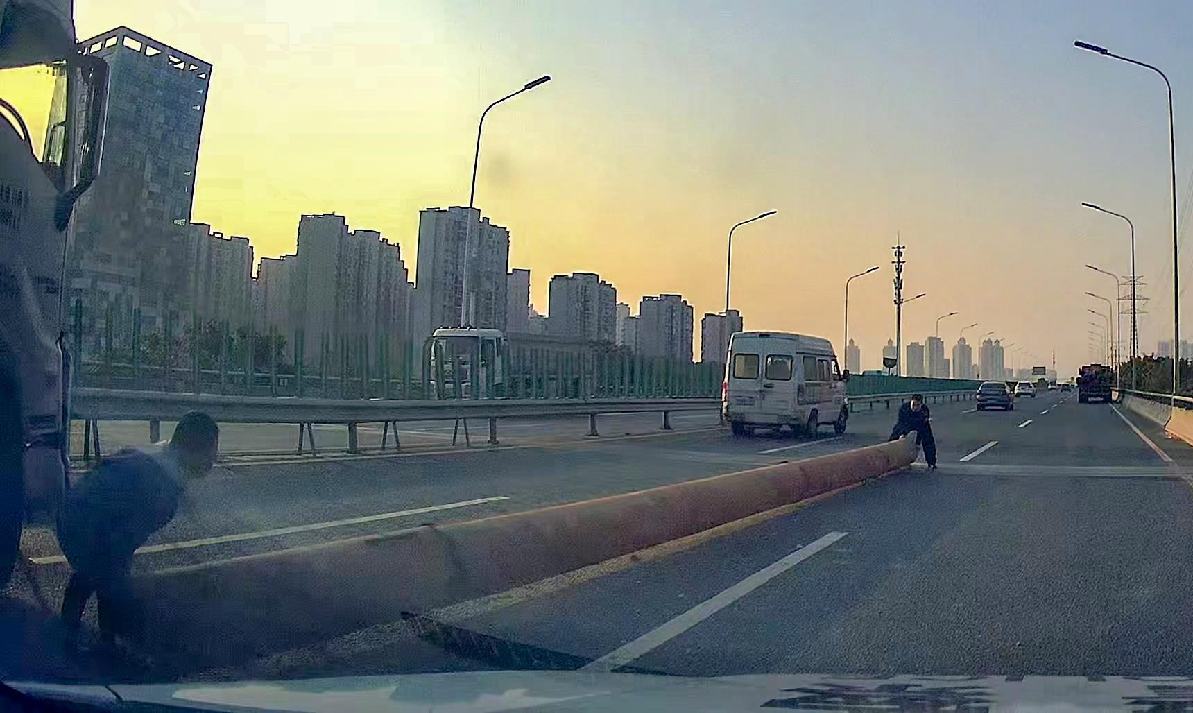 此时正值高峰时段,车流量大,滚落的钢桩若不及时处置,极易引发交通事故。周行立即靠边停车,和陈卓君一起在现场设置警示标志,指挥过往车辆减速绕行,并联合司机徒手将滚落的钢桩临时推到路边。