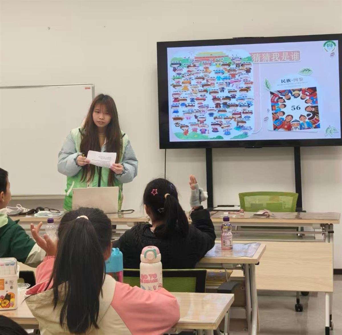 民族故事分享环节成为活动的“文化课堂”。孩子们化身“小小故事家”,依次走上台前分享精心准备的民族故事。有的讲述了文成公主入藏促进汉藏文化交融的佳话,有的分享了哈萨克族“阿凡提”的智慧故事,还有的讲述了土家族姑娘织就西兰卡普传递真爱的传说。当听到西兰卡普作为土家族“五彩活化石”,是姑娘们出嫁时重要嫁妆的习俗时,孩子们纷纷露出了惊奇的表情,现场提问声接连不断。