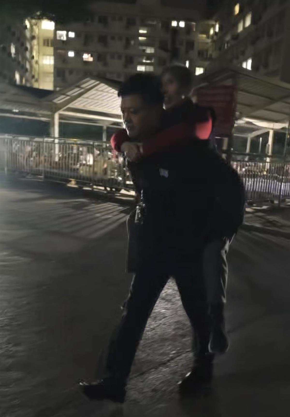 寂静的夜色中,袁大强背着老人的背影格外醒目。他一路小心翼翼地护送老人,走到老人的家时,家属早已在门口翘首以盼。令人动容的是,尽管身体十分虚弱,周婆婆却执意拉着袁大强的手,要求合影留念,用这种质朴的方式记录下这份感激。