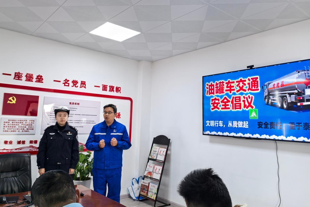 活动伊始,交通管理大队民警彭丽斯以“丽斯交通课堂”为载体,针对危化品运输车驾驶员与企业管理人员开展交通安全警示教育活动。课堂围绕警示教育篇、法律普及篇、安全行车篇、应急处置篇、企业管理篇五大模块,系统讲解危化品运输车全链条安全管理要点——通过剖析典型事故案例、播放事故现场视频,直观呈现酒驾醉驾、超速超载、行人闯红灯等交通违法行为的严重危害,同时重点普及危化品车辆安全驾驶规范、非机动车骑行注意事项等实用知识。考虑到油库运输车辆高频出行的工作特性,民警还特别拆解“安全行车三要素”,即“出车检查要合格、行车途中要规范、精神状态要良好”,并现场演示油罐车倒车入库时牵引人员的正确站位,纠正指挥手势偏差,进一步规范车辆出车、停车全流程操作。