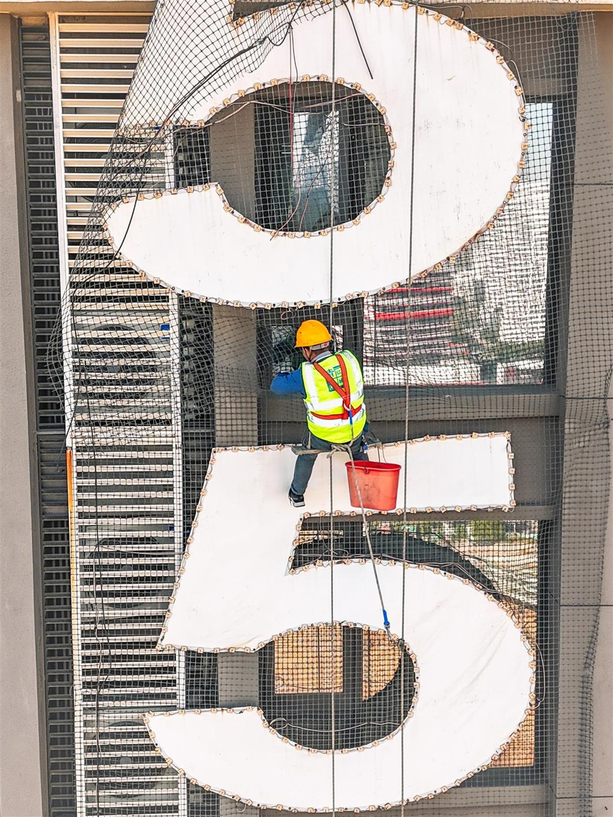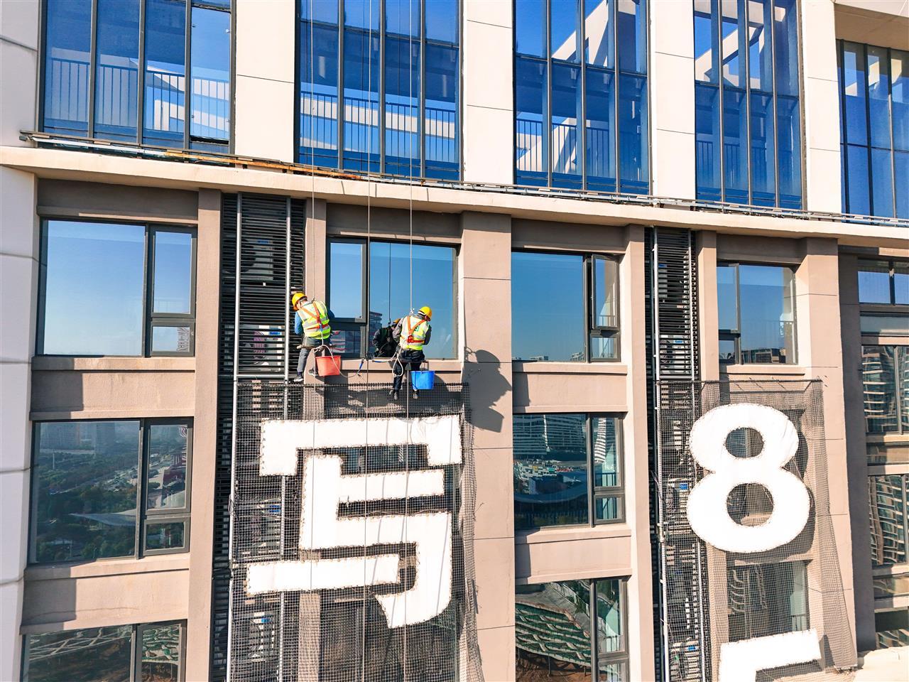 蜘蛛人高空作业,拆除违规广告
