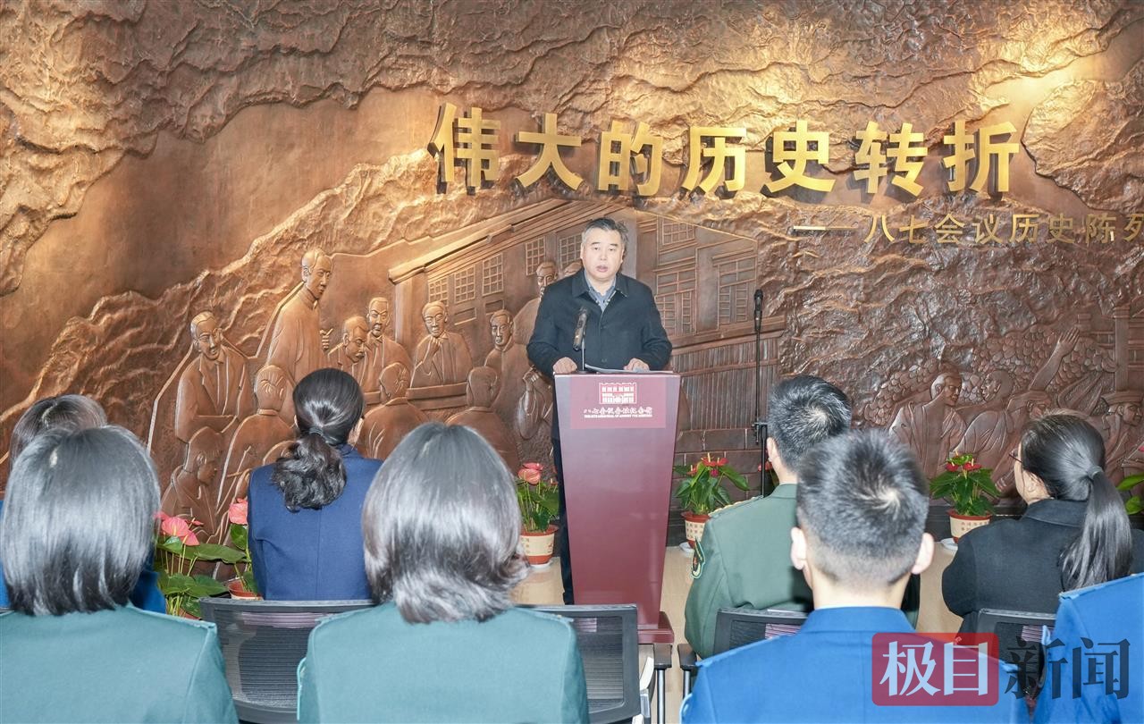 仪式现场,江岸区人武部领导做动员讲话。他指出,八七会议是中国共产党在革命危急关头召开的关键会议,总结大革命失败教训、确立土地革命与武装斗争方针,为党的武装斗争理论与实践筑牢根基,在此开展红色解说员队伍建设意义深远。他强调,全体解说员要沉下心钻研红色历史,深刻感悟革命先辈的坚定信念与战略远见,锤炼富有感染力、说服力的讲解能力,既要讲好武汉革命过往,更要聚焦当下发展成果,生动诠释党的伟大实践在湖北、武汉的落地成效,让红色宣讲更具时代温度。