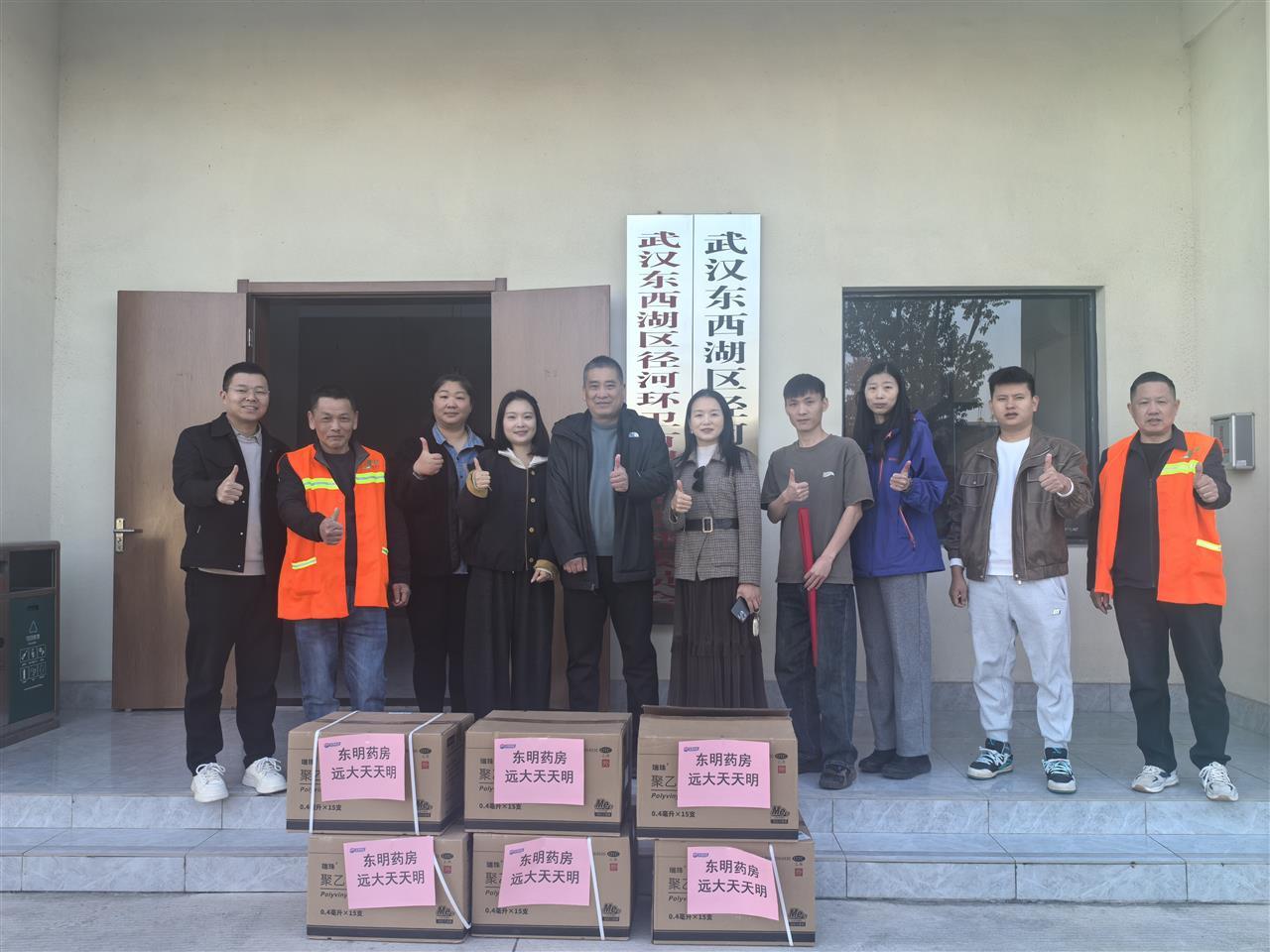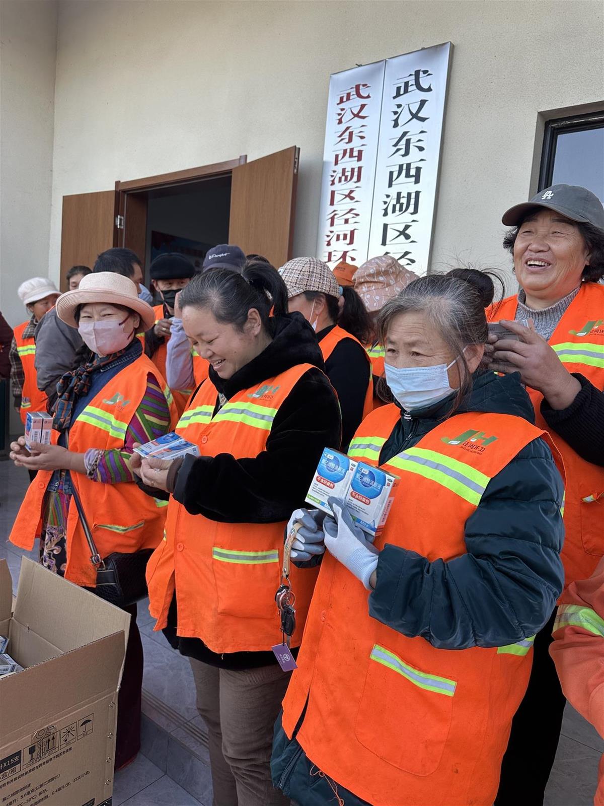 近日,两家爱心企业走进武汉市东西湖区径河街,开展“护眼关爱”公益慰问活动,为辖区一线环卫工人送去1800盒滴眼液,致敬城市美容师。