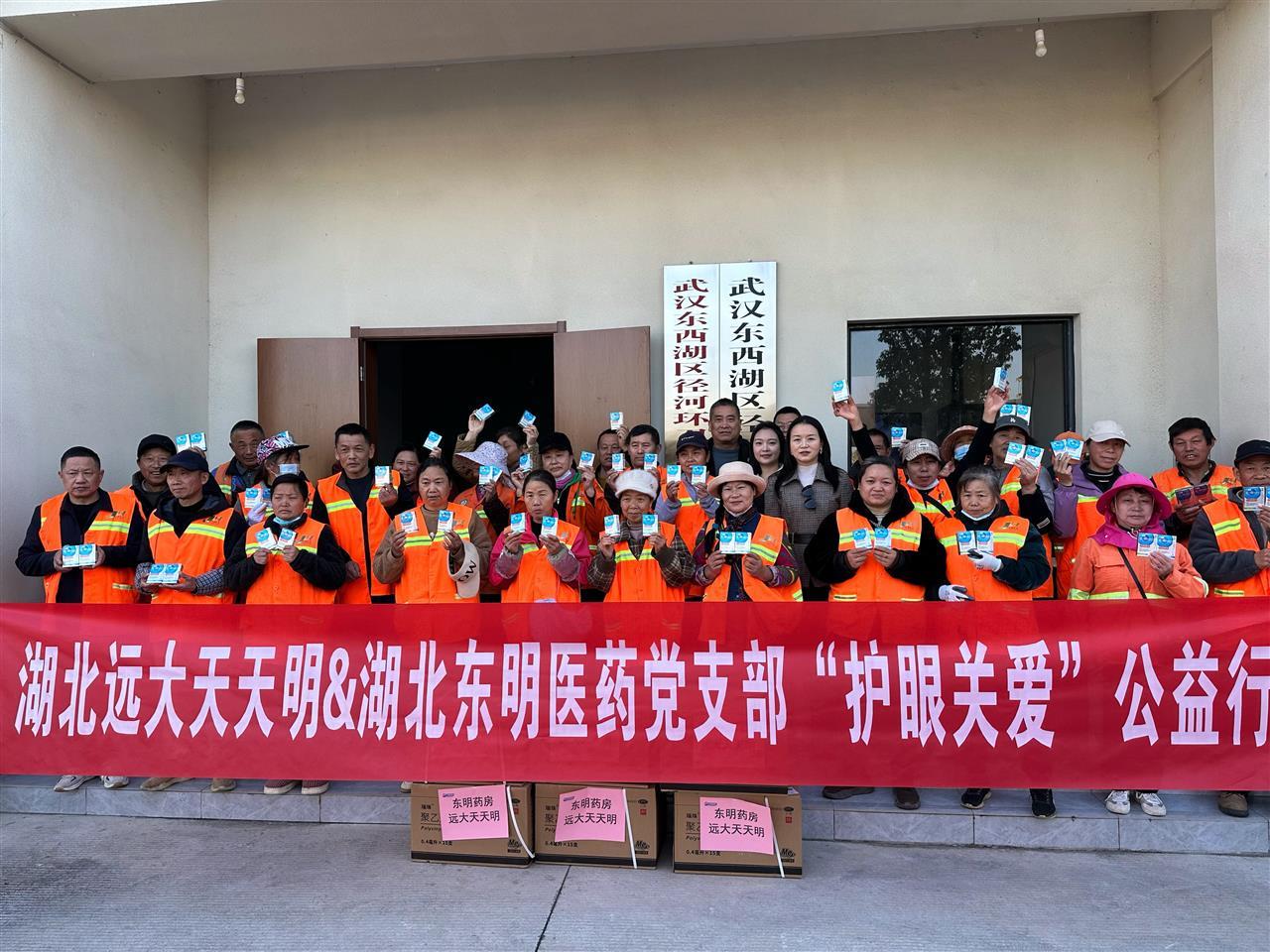 活动现场,数十名身着橙色反光背心的环卫工人接过爱心企业捐赠的护眼产品,脸上洋溢着笑容。湖北东明医药有限公司党支部和湖北远大天天明制药有限公司代表表示,环卫工人是城市环境的美容师,长期在户外作业易产生眼部疲劳等症状,希望通过专业护眼物资,为他们的眼部健康提供一份保障。