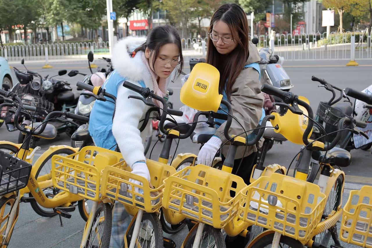 11月27日,武汉光谷软件园周边迎来了一批身着学校志愿服装的年轻身影。中南财经政法大学统计与数学学院志愿者协会的14名大学生,联合哈啰、美团两家共享出行企业,共同开展“青春齐力,护‘骑’佳序”志愿服务活动,对周边共享单车进行无差别规范整理,以实际行动参与城市治理,传递文明出行新风尚。