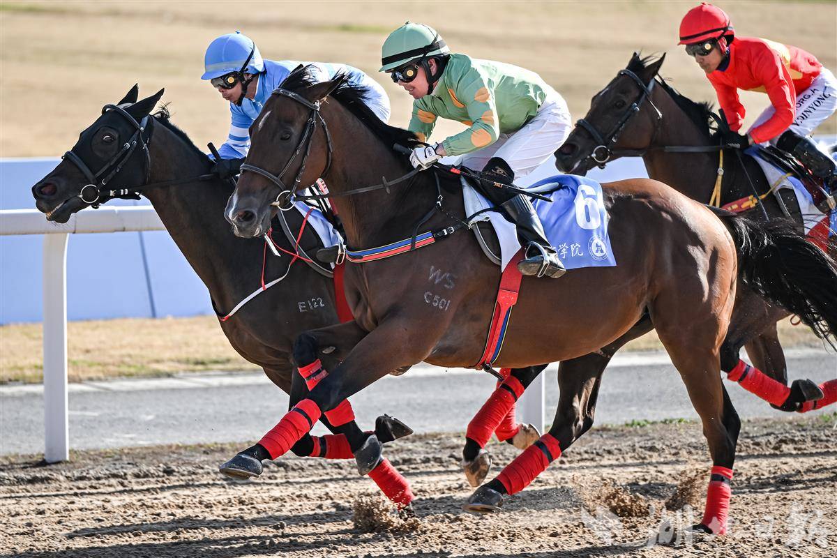 11月29日,骑师驾驭赛马进行速度赛马表演。(湖北日报全媒记者 任勇 摄)