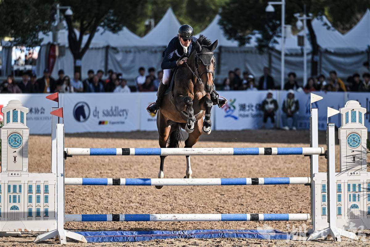 11月29日,一名选手驾驭赛马在场地障碍赛中。(湖北日报全媒记者 任勇 摄)