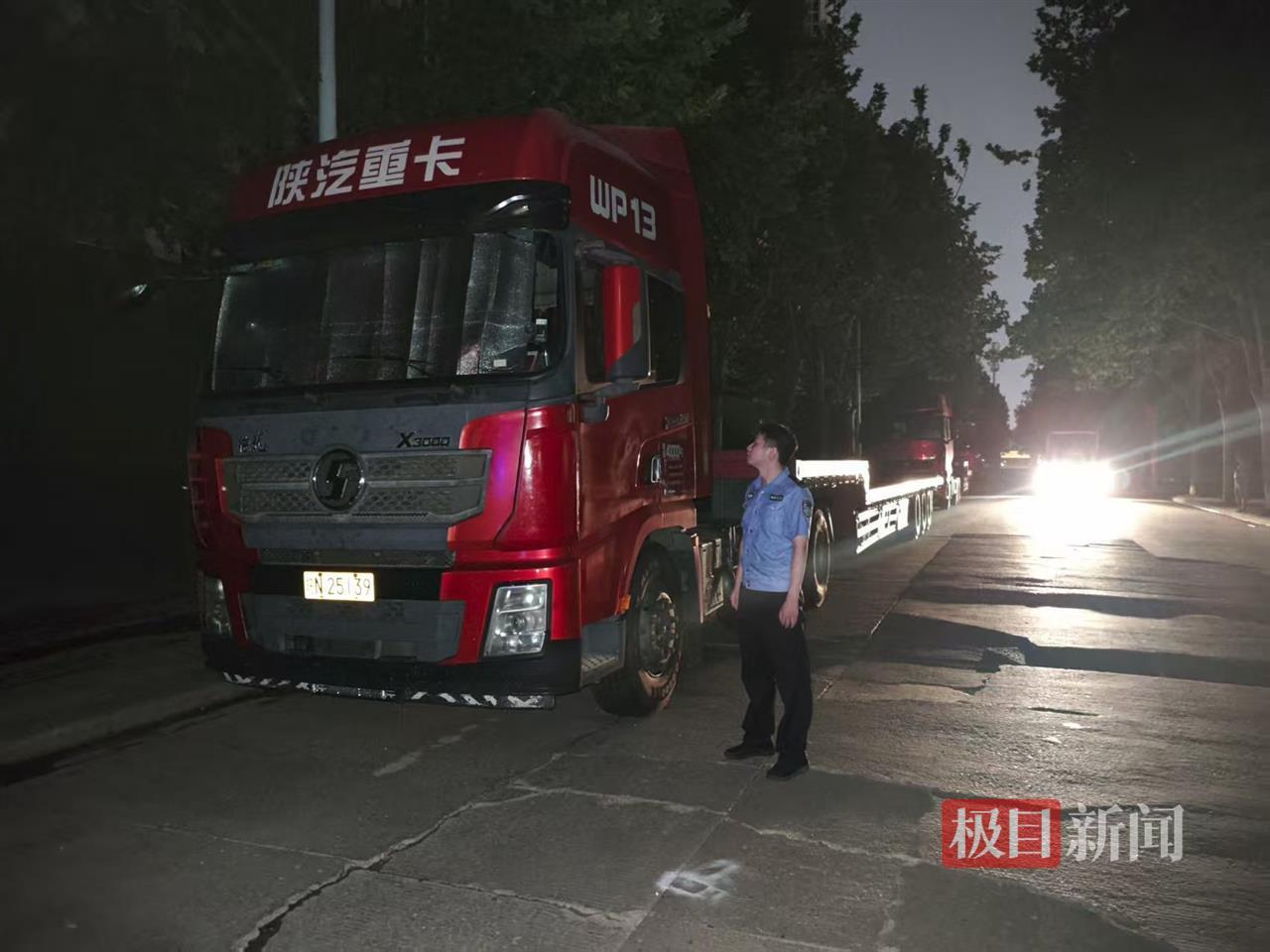 徐义哲夜巡中向大货车司机普及防盗知识