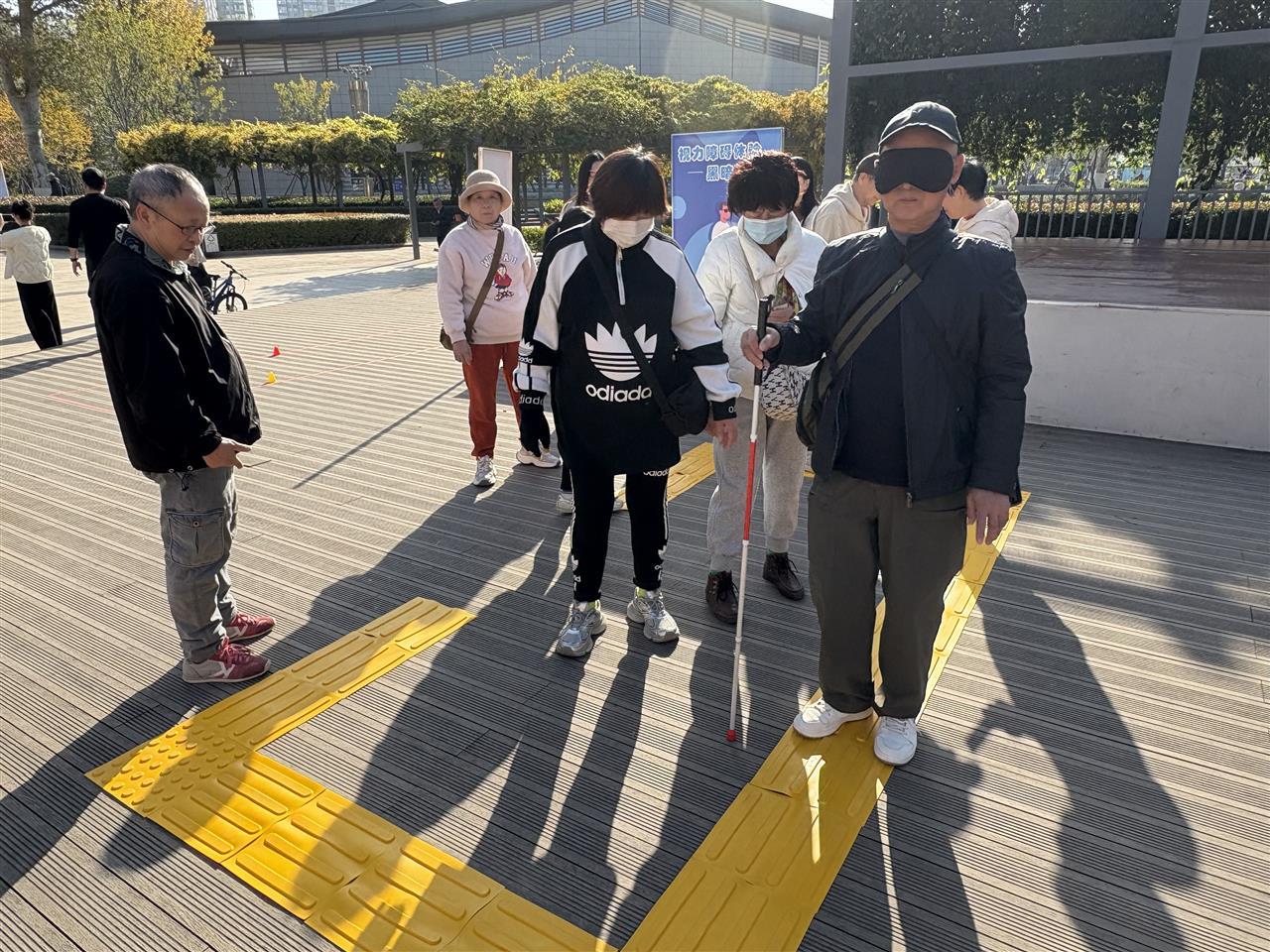 “黑暗中前行”体验区,参与者佩戴完全遮光眼罩,手持盲杖在设有转弯的盲道上行走。“当眼前一片漆黑时,心里满是不安。短短十几米,感觉走了很久。”市民张先生感慨。一位年轻女士表示:“以后一定会主动爱护盲道,为视障人士守护好‘安全通道’。”