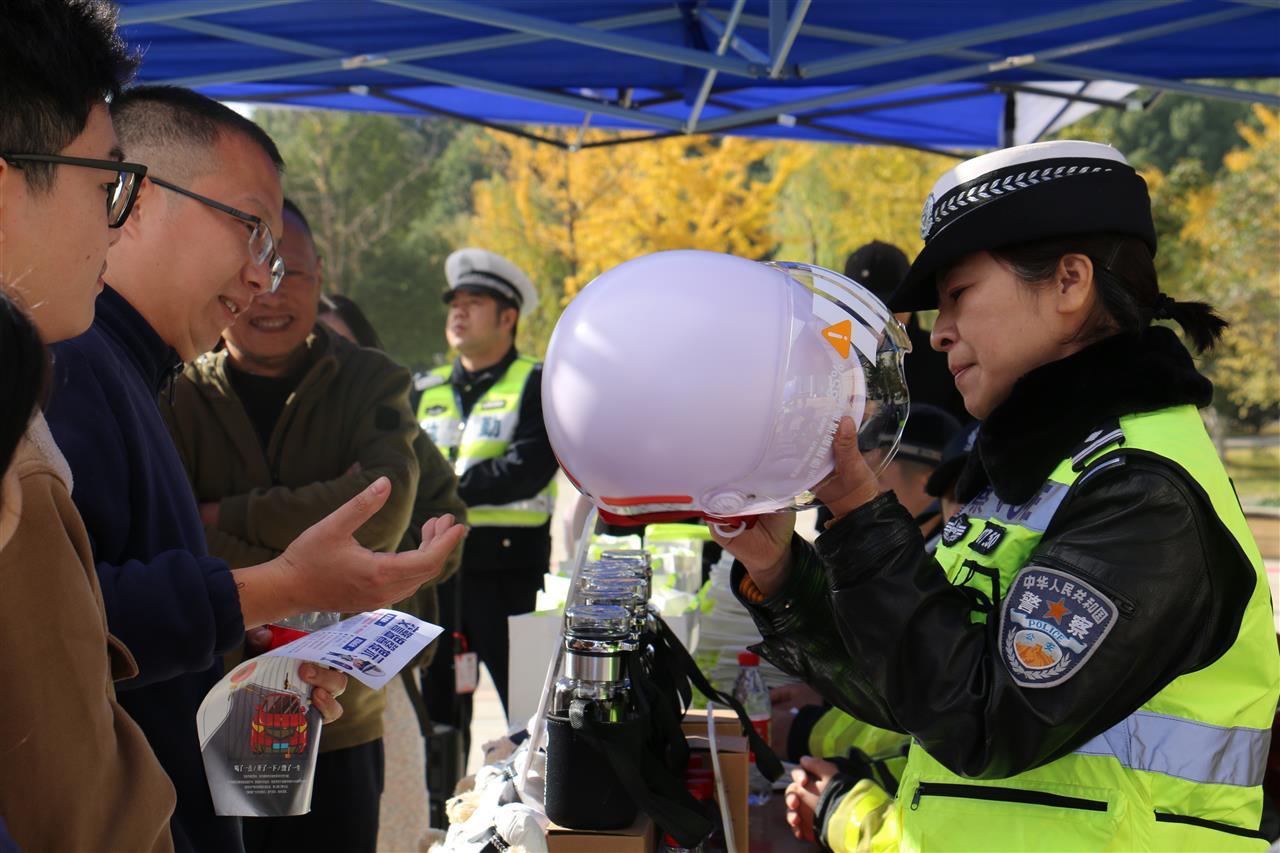 活动中,“流动车管所”服务车现场办理电动车资料审核、车辆查验、号牌发放等业务,“一站式”服务举措受到了在校师生的热烈欢迎。武汉市公安局洪山区分局交通管理大队宣教民警以“校园安全出行”为主题,通过交通安全知识有奖问答的形式,普及安全出行知识,宣讲交通法律法规。此外,交警还精心准备了安全头盔、交警小熊、钥匙扣、文创帆布袋等礼品,鼓励广大师生将学到的交通安全知识分享给身边的朋友和家人,做文明交通的参与者和宣传员,共同营造良好的道路交通环境。活动当天,共计发放各类宣传资料1500余份,“流动车管所”办理电动车登记上牌业务10余笔,贴心的宣传服务赢得了师生们的好评。