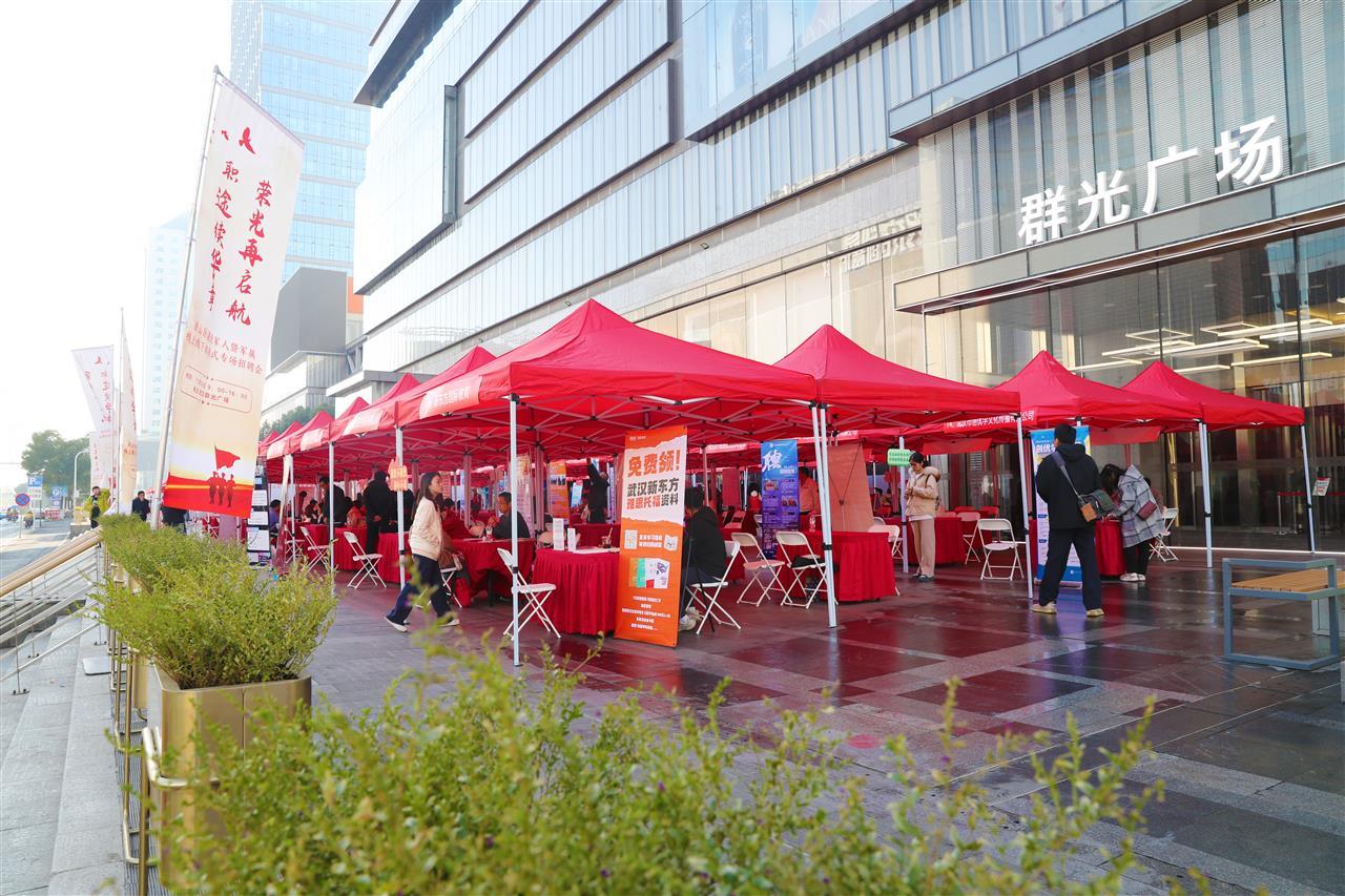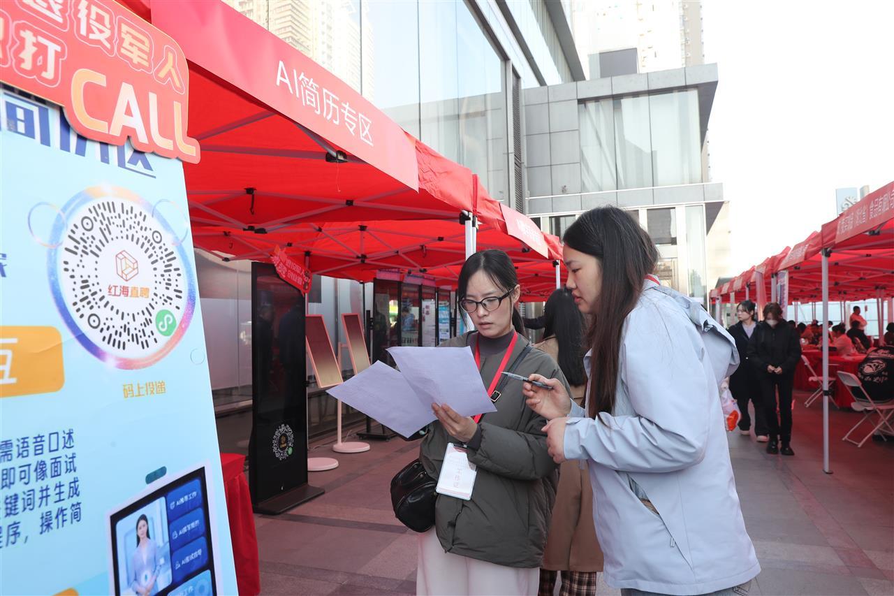 11月30日,武汉群光广场人头攒动、气氛热烈,“荣光再启航 职途续华章”——武汉市洪山区退役军人暨军属专场招聘会在这里拉开帷幕。这场别开生面的招聘活动,不仅汇聚了众多优质岗位,更融合了前沿AI技术,为退役军人及军属打造了一场“线上+线下”双向赋能、精准高效的就业服务盛宴。