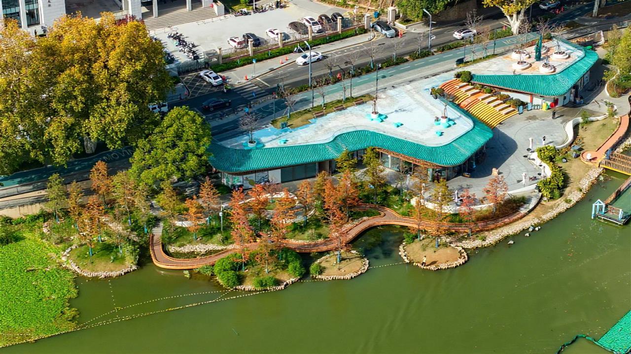 琉璃绿瓦,掩映在疏林之间,这个公厕早已超越了本身的功能,在提供干净、便捷服务的同时,与东湖南路的景观融于一体,为这份初冬的浪漫,添上了一笔温暖而厚重的人文特色。