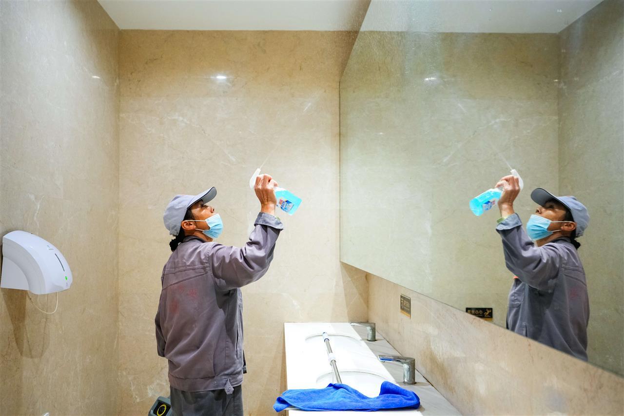 走进公厕,一位公厕保洁员正在忙碌,每当有人离开,她便迅速进入,细致擦拭、消毒、清理,连洗手台的水渍也不放过。定时通风、更换熏香,确保这里蚊虫不扰、气息清新;及时补充纸巾与洗手液,不让小事打扰游客赏景的心情。特别是到了周末人多的时候,她更是忙得脚不沾地,细心维护着这一方小天地的洁净(见下图)。