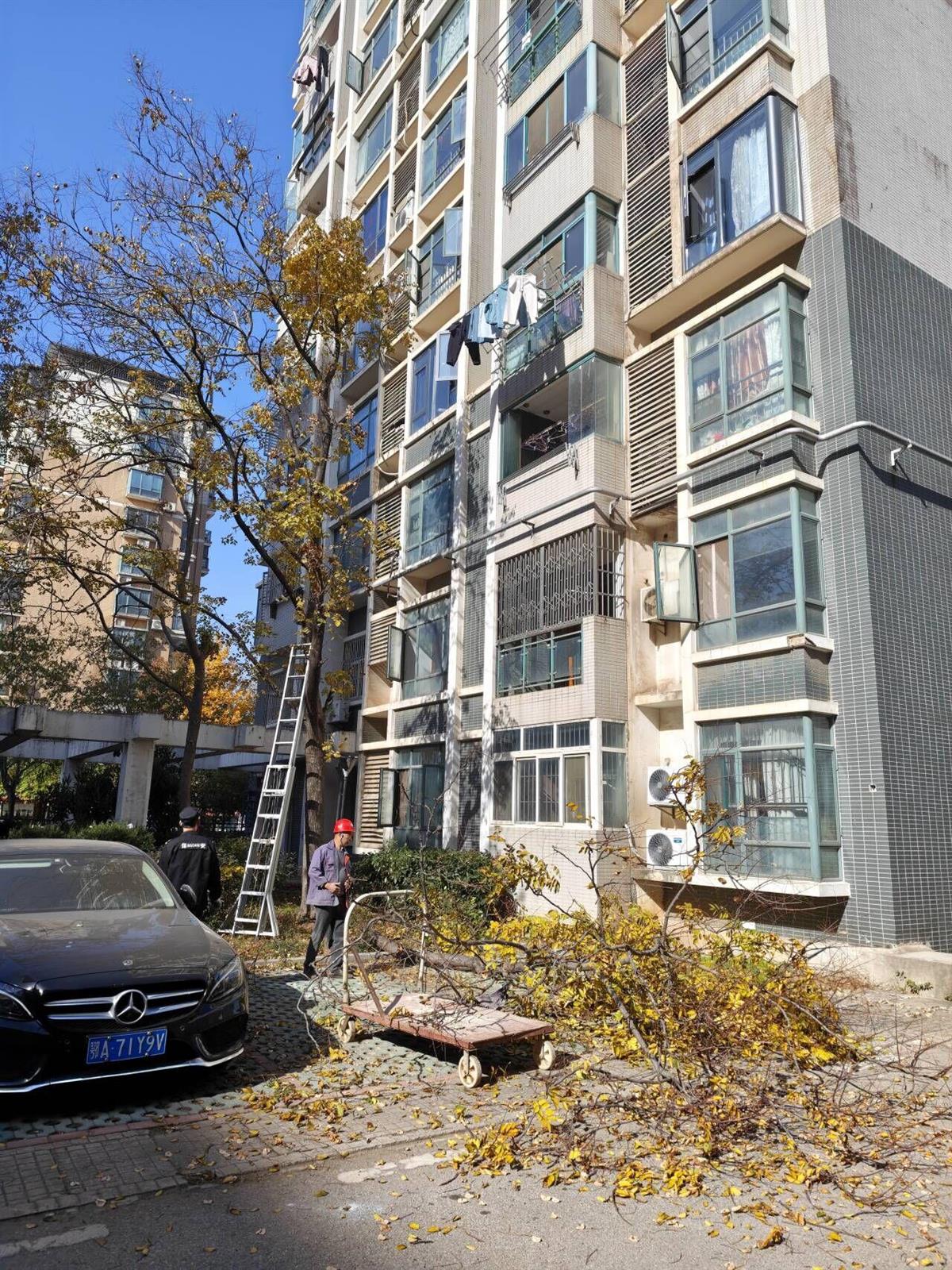 原来,社区网格员在日常巡查中发现,部分小区楼栋前的树木因长期未修剪,枝干肆意生长,不仅遮挡了低层居民家中的采光,部分低垂的树叶还垂落在了居民洗干净的被褥和衣服上面。了解到居民们的困扰后,网格员第一时间协调物业工作人员前往现场查看。