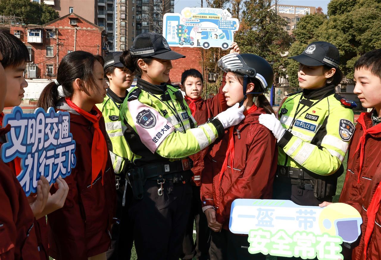为进一步增强小学生交通安全意识和自我防护能力,筑牢校园道路交通安全防线,12月1日,武汉市公安局武昌区分局交通管理大队民警辅警走进中山路小学,开展趣味十足的交通安全宣传体验活动。