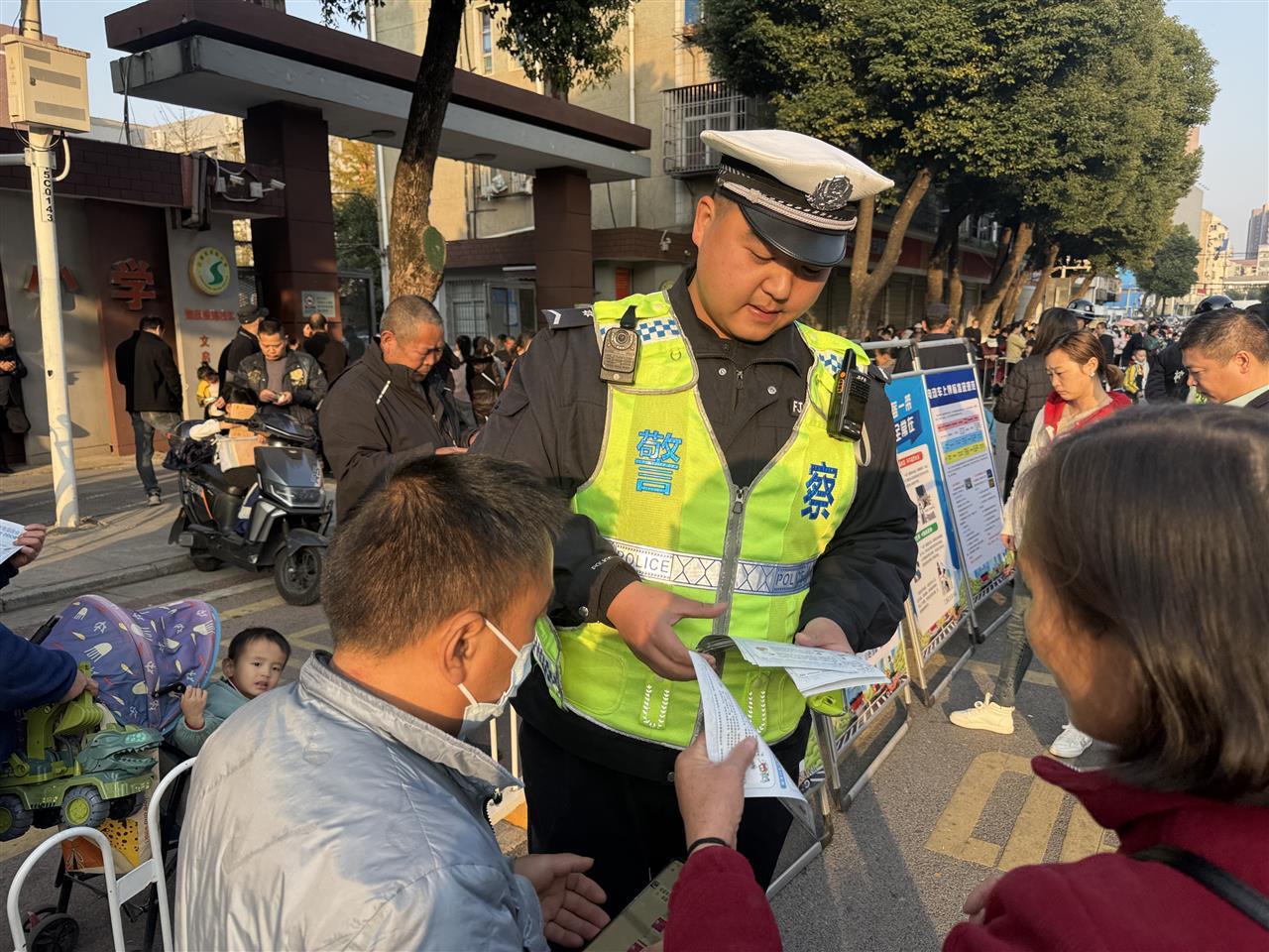 “同学,过马路要走斑马线,不能横穿马路,更不能在马路上追逐打闹哦。”民警一边摆放宣传展板、发放安全手册,一边耐心叮嘱,用细致提醒为学生与家长筑起“放学安全屏障”。12月2日上午,七中队延续校园宣传热潮,分别走进安山小学、法泗小学、湖泗小学,五中队同步进驻江夏区向阳学校,通过趣味讲解、情景模拟等形式,将交通安全种子播撒进青少年心中。