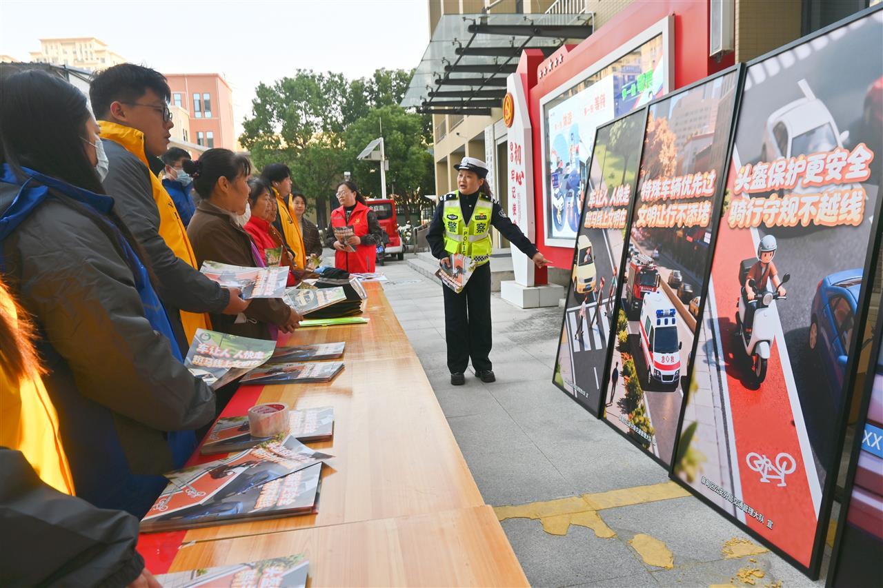 在高湖社区,四中队民警周莹、胡阮俊带领宣传小分队布置起“宣传阵地”。摆放展板、悬挂横幅、发放资料、讲解案例、提供咨询……民辅警们以多种形式与社区居民面对面交流,详细分析事故成因,阐述交通违法的社会和家庭危害,并针对冬季恶劣天气,传授安全行车技巧。活动强调驾乘汽车系好安全带、骑乘摩托车和电动车佩戴安全头盔的重要性,呼吁居民从杜绝酒驾、无证驾驶、闯红灯、乱停乱放等细节做起,争做文明交通的践行者。