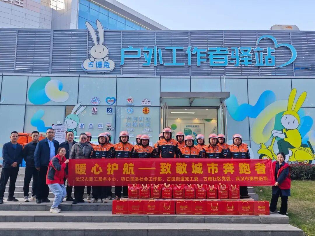 为进一步提升新就业群体的获得感、幸福感与归属感,近日,武汉市硚口区古田街道党工委、古雅社区党委在“古德兔”户外工作者驿站举办“暖心护航——致敬城市奔跑者”主题慰问活动,此次活动由武汉市职工服务中心、硚口区委社会工作部指导,特邀武汉市第四医院专家团队参与,为快递员、网约配送员等新就业群体送温暖。