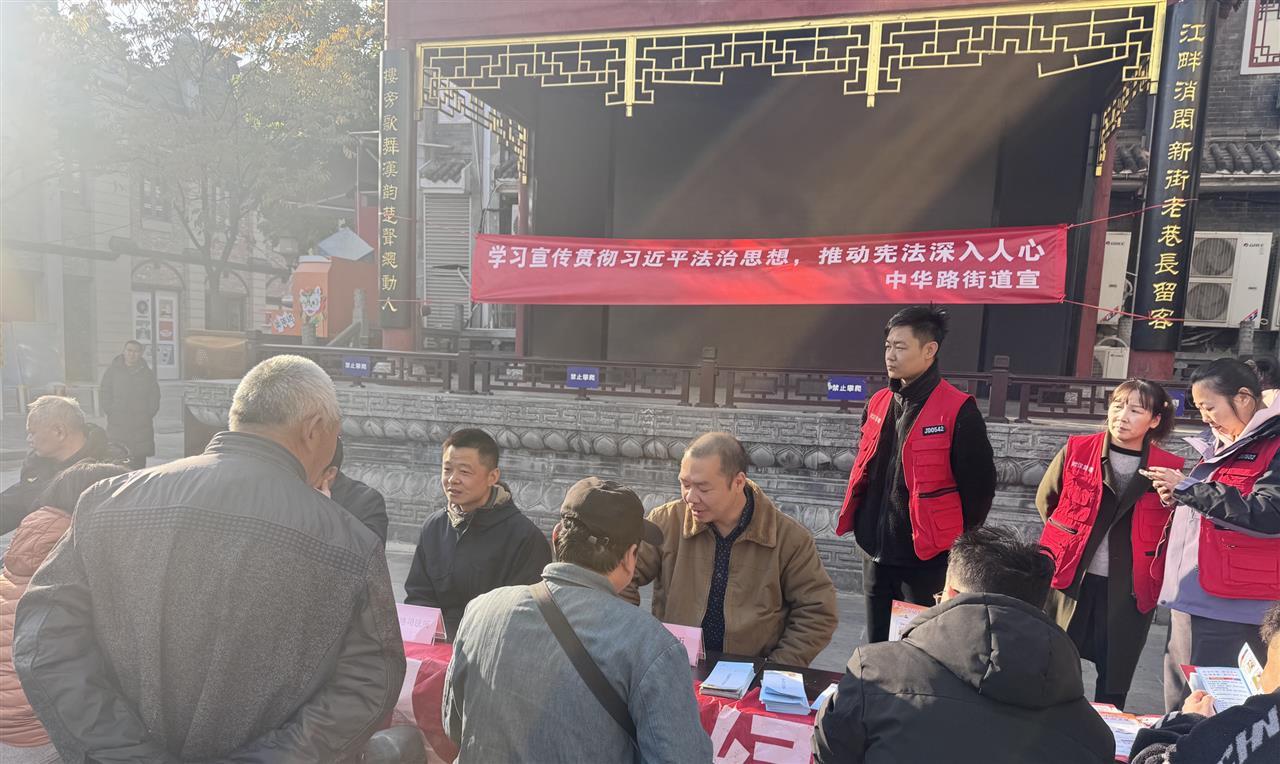 12月4日,武汉市武昌区中华路司法所联合中华路街道平安办、派出所、市场监管所等多个部门,在户部巷共同举办普法宣传活动。