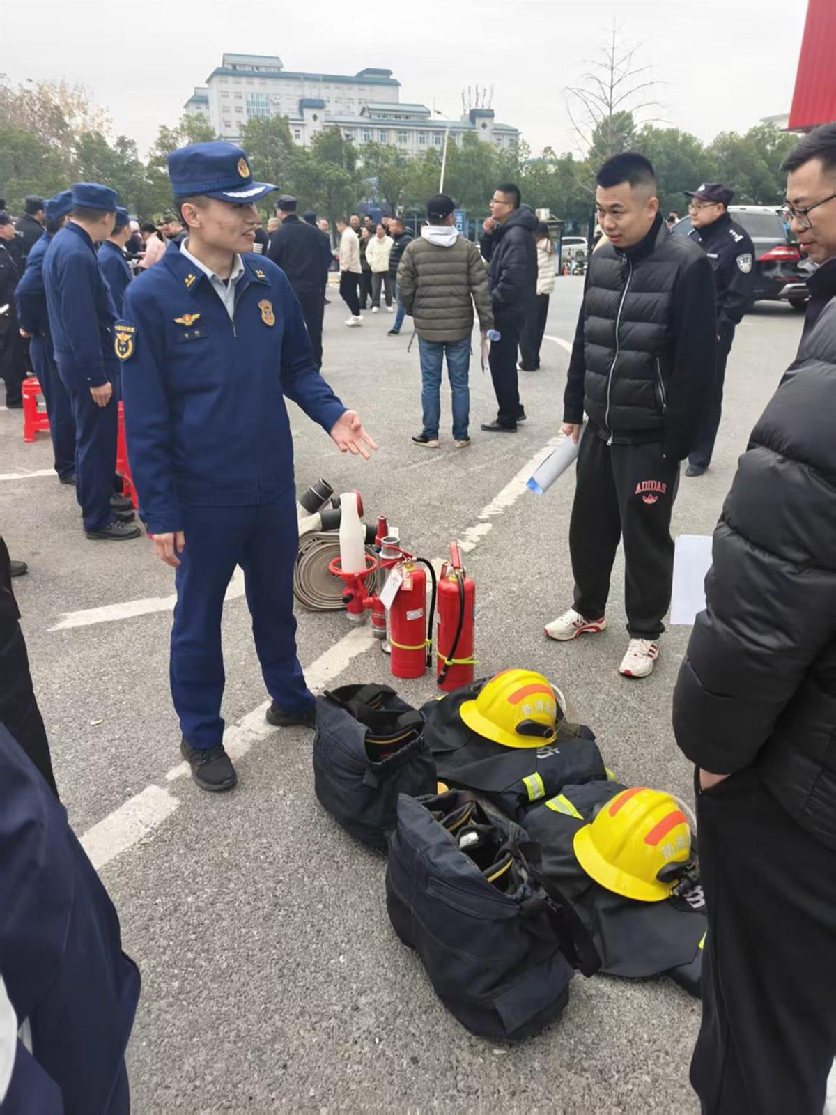 一旁的消防宣传区域同样热度不减。消防救援人员结合冬季火灾特点,重点讲解了用电防火安全知识,并现场演示灭火器的使用方法:“使用灭火器要记牢‘提、拔、握、压’四个步骤,提住瓶身、拔掉保险销、握住喷管、对准火焰根部按压,掌握这些技巧,初期火灾就能及时控制。”生动的讲解和规范的演示,让应急科普更具针对性,进一步提升了居民的安全防护意识和自救互救能力。