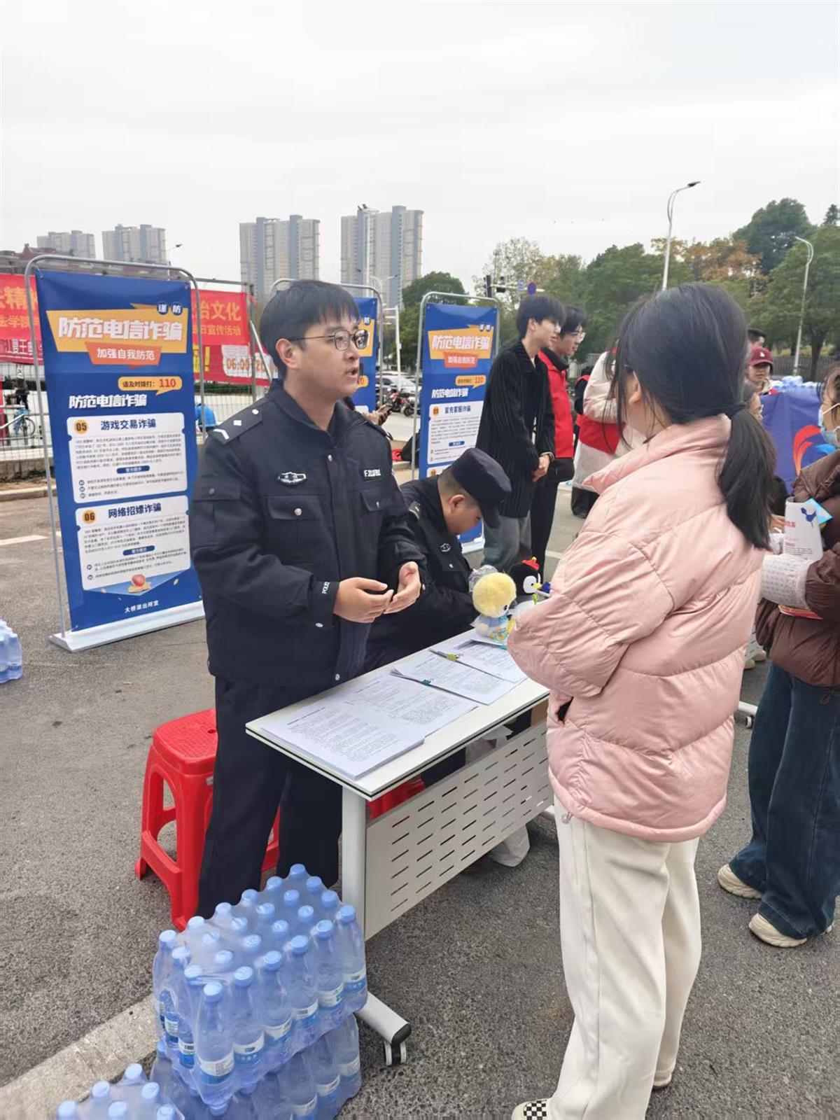 “婆婆,您看这个案例,就是骗子冒充保健品推销员骗走老人养老钱的,遇到这种情况千万要先跟子女商量,或者直接来派出所问我们。”12月4日国家宪法日当天,武汉江夏区欧亚达广场的法治宣传活动现场,民警耐心地向一位老年居民讲解反诈知识。当日,江夏区公安分局大桥派出所联合江夏区经济开发区司法所、武汉学院枫桥法翼先锋队、江夏区消防救援大队,共同开展“宪法护航平安社区警务为民共筑和谐”主题宣传活动,将法治保障与警务服务送到居民身边。