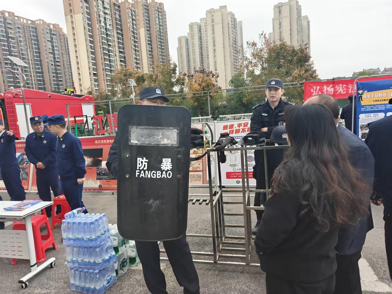 警务装备互动体验区,警棍、盾牌、手铐等的警务装备整齐陈列,吸引了不少居民的目光。“在面对持械歹徒时,盾牌能有效格挡攻击,为我们争取反击和避险的时间……”民警一边讲解装备的功能用途和执法规范,一边现场示范操作要领。几位居民在民警的指导下,饶有兴趣地拿起警务装备亲身体验,真切感受到了警务装备在执法办案和安全防护中的重要作用。