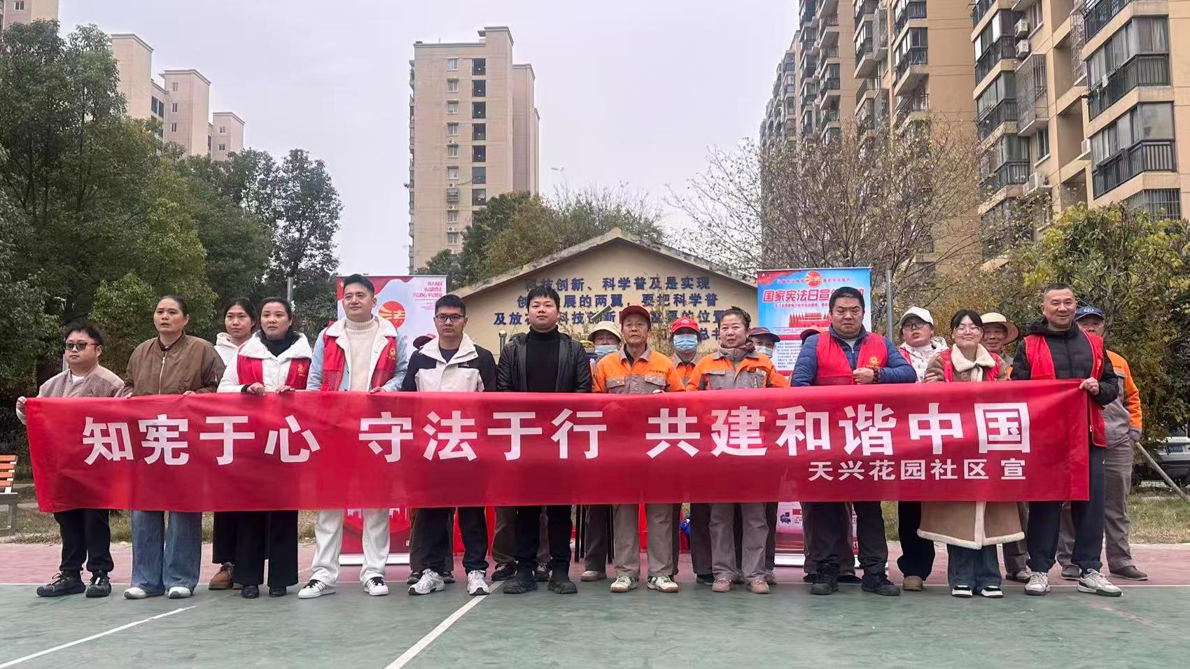 12月4日,武汉长江新区天兴花园社区以“知宪于心,守法于行”为主题,开展普法宣传活动,让宪法知识走进千家万户,让法治精神浸润群众心田。