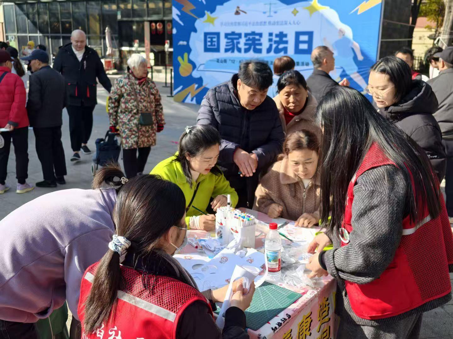 现场设置了五大特色区域,各区域功能鲜明、互动性强,满足了不同居民的需求。法治咨询区是本次集市的核心区域,律师与社区法务工作者坐镇值守,免费为居民解答婚姻家庭、邻里纠纷、财产继承等民生法律难题,同时针对“宪法如何保障公民的财产权”“宪法对社区治理有哪些指导意义”等热点问题进行专业解读。