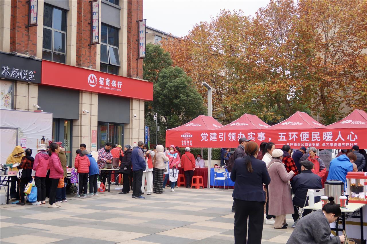 为弘扬“奉献、友爱、互助、进步”的志愿精神,切实提升居民健康意识与生活便利度,12月4日,在“国际志愿者日”来临之际,武汉市洪山区卓刀泉街道五环社区携手五环物业公司党支部联合多家共建单位,在五环天地广场举办便民市集志愿活动,让居民在家门口就能享受到“一站式”优质服务。